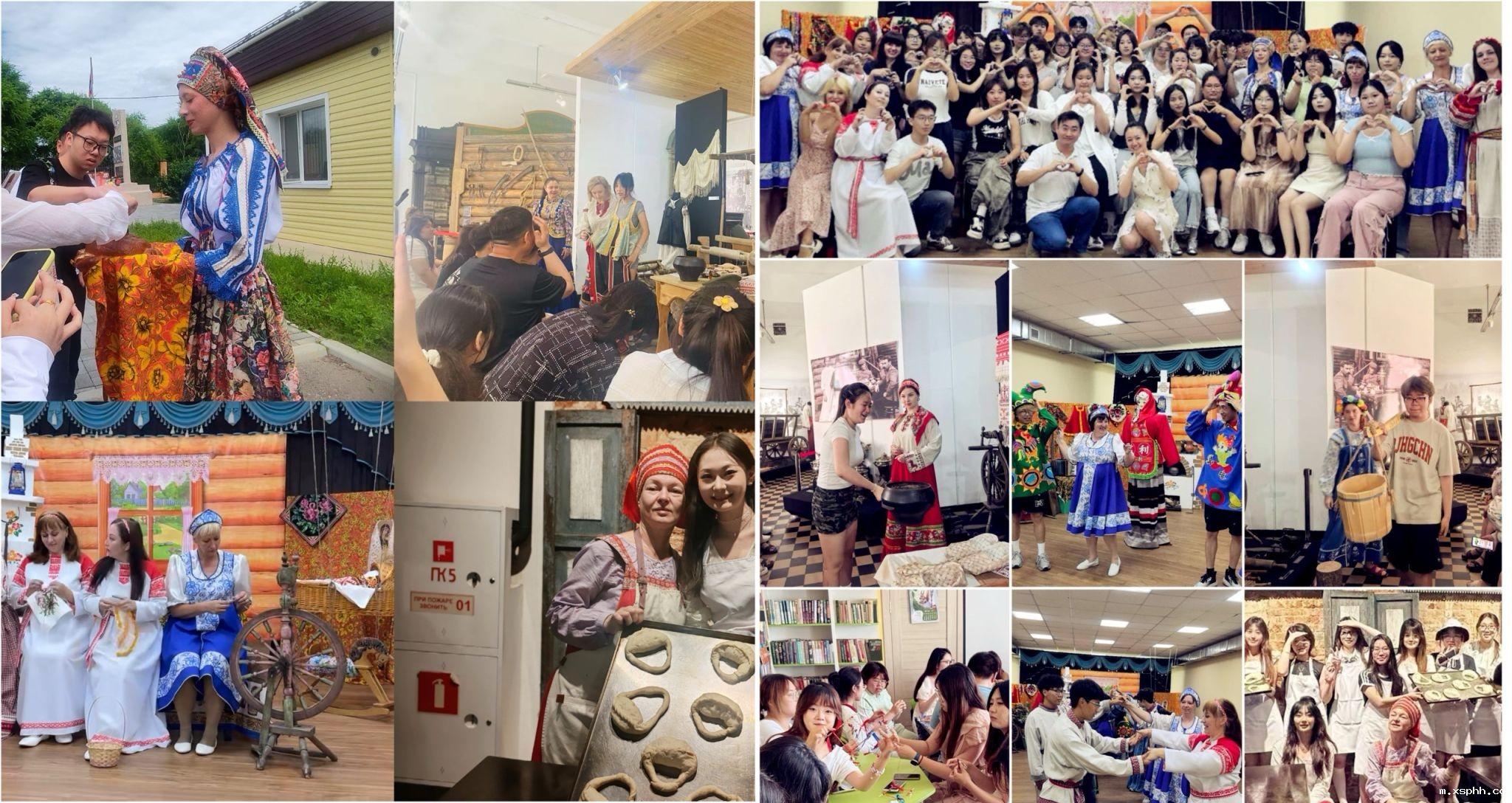 在实践环节,学生走进布市街头,实地观察俄式建筑与城市风貌,结合课堂知识分析文化对城市形态的影响;参观阿穆尔州地方志博物馆,通过文物与史料感知该地区的历史变迁。学生还走进本地商场,对比中俄商品差异,开展市场调研,并与消费者交流以了解其消费习惯。民俗体验包括学习传统面包制作、参与民间手工艺实践、体验传统服饰与舞蹈,在互动中深入感受俄罗斯文化的魅力。